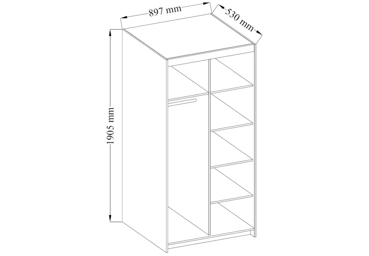 Szafa ELE 2 D to kompaktowy, dwudrzwiowy model zaprojektowany z myślą o wygodnym przechowywaniu i estetycznym wyglądzie. Dzięki szerokości 90 cm doskonale sprawdzi się w mniejszych pomieszczeniach – sypialni, przedpokoju, pokoju młodzieżowym czy biurze – oferując praktyczne wnętrze bez zajmowania nadmiernej przestrzeni.