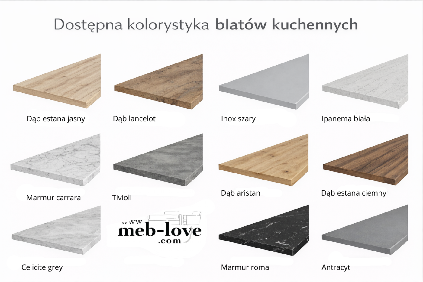 🎨 Dostępna kolorystyka mebli i blatów