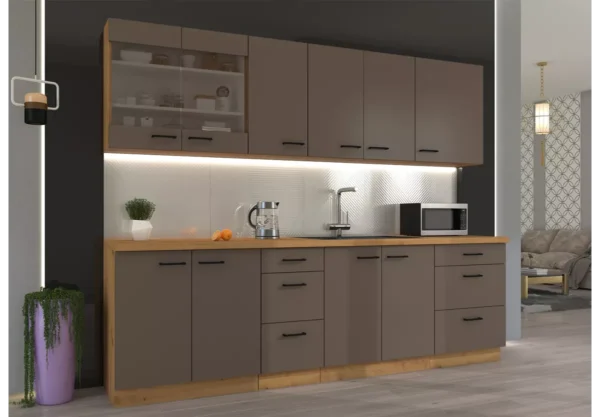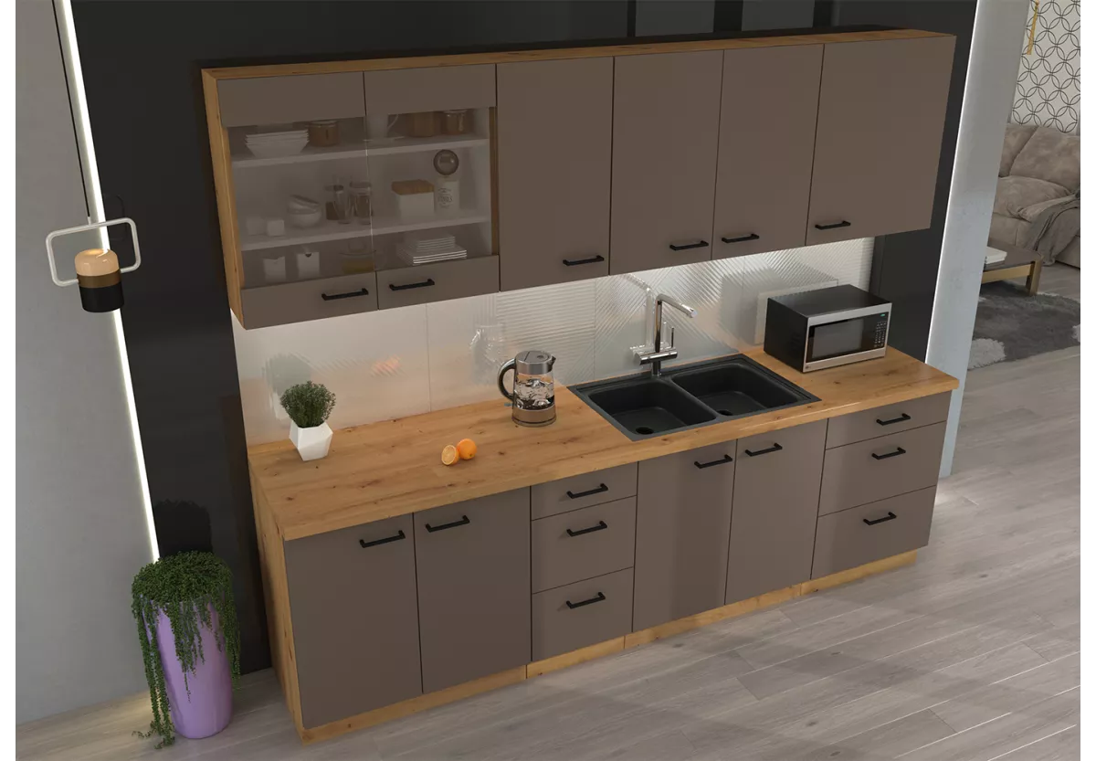Zestaw mebli kuchennych Tamiza II to propozycja dla osób, które cenią minimalistyczny design, funkcjonalność oraz wysoką jakość wykonania. Matowe fronty nadają kuchni elegancki, nowoczesny charakter, a rozbudowany układ szafek zapewnia wygodę użytkowania każdego dnia.