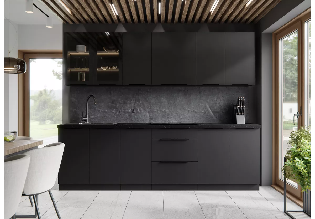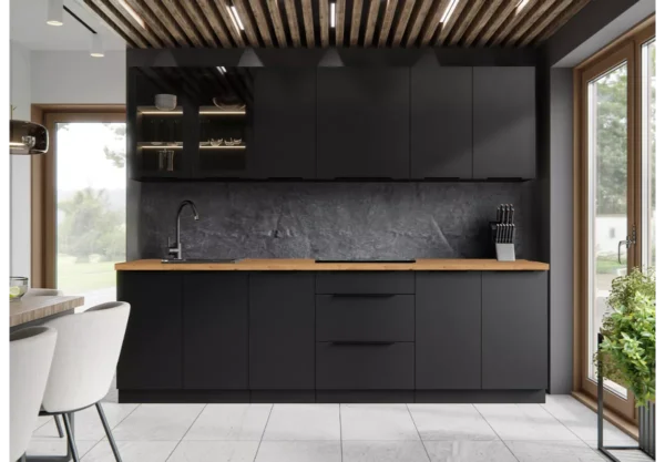 • Czarne uchwyty krawędziowe podkreślające nowoczesny styl zestawu