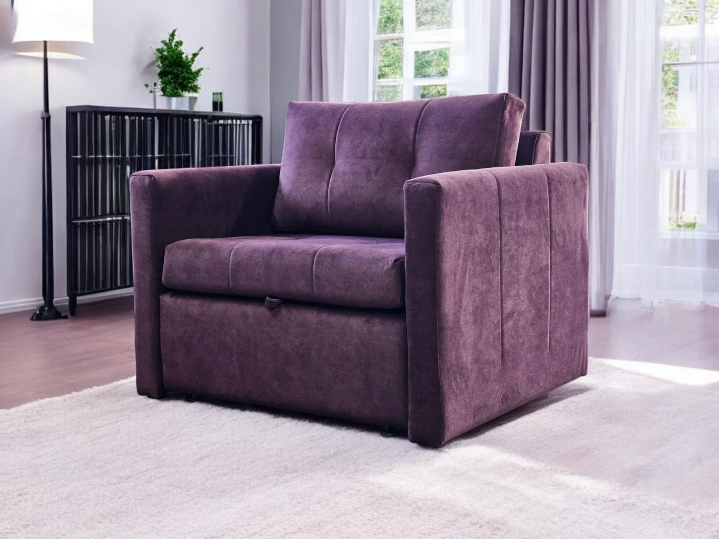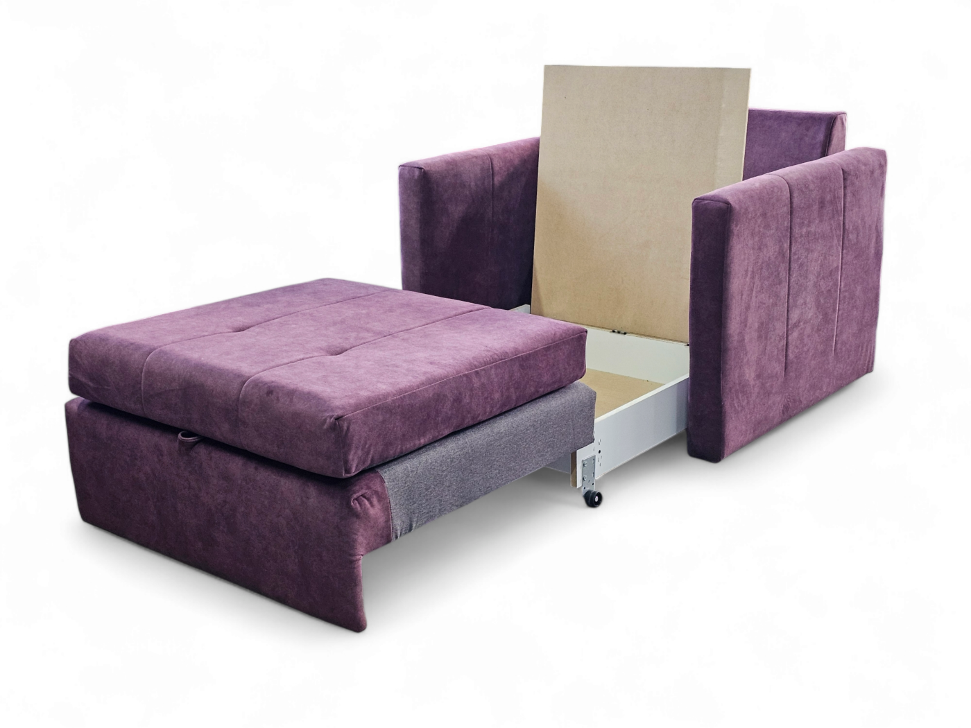 fotel wyposażony w pojemny schowek na pościel lub drobiazgi, co pozwala zaoszczędzić miejsce i utrzymać porządek