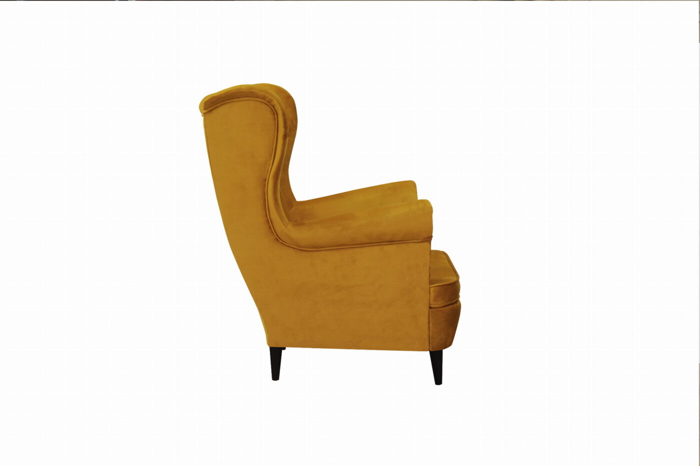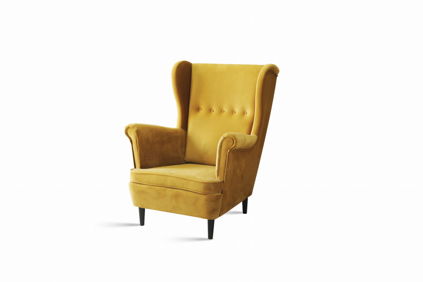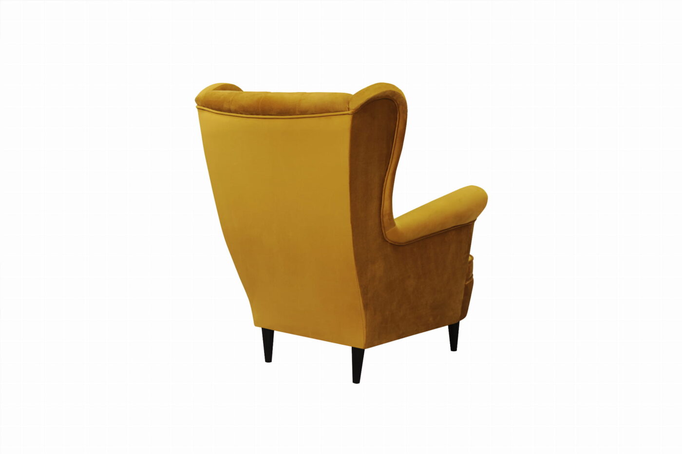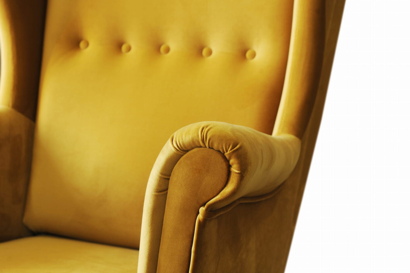 Wysokie podłokietniki i charakterystyczne „uszy” tworzą idealne miejsce do relaksu z książką lub filiżanką herbaty.