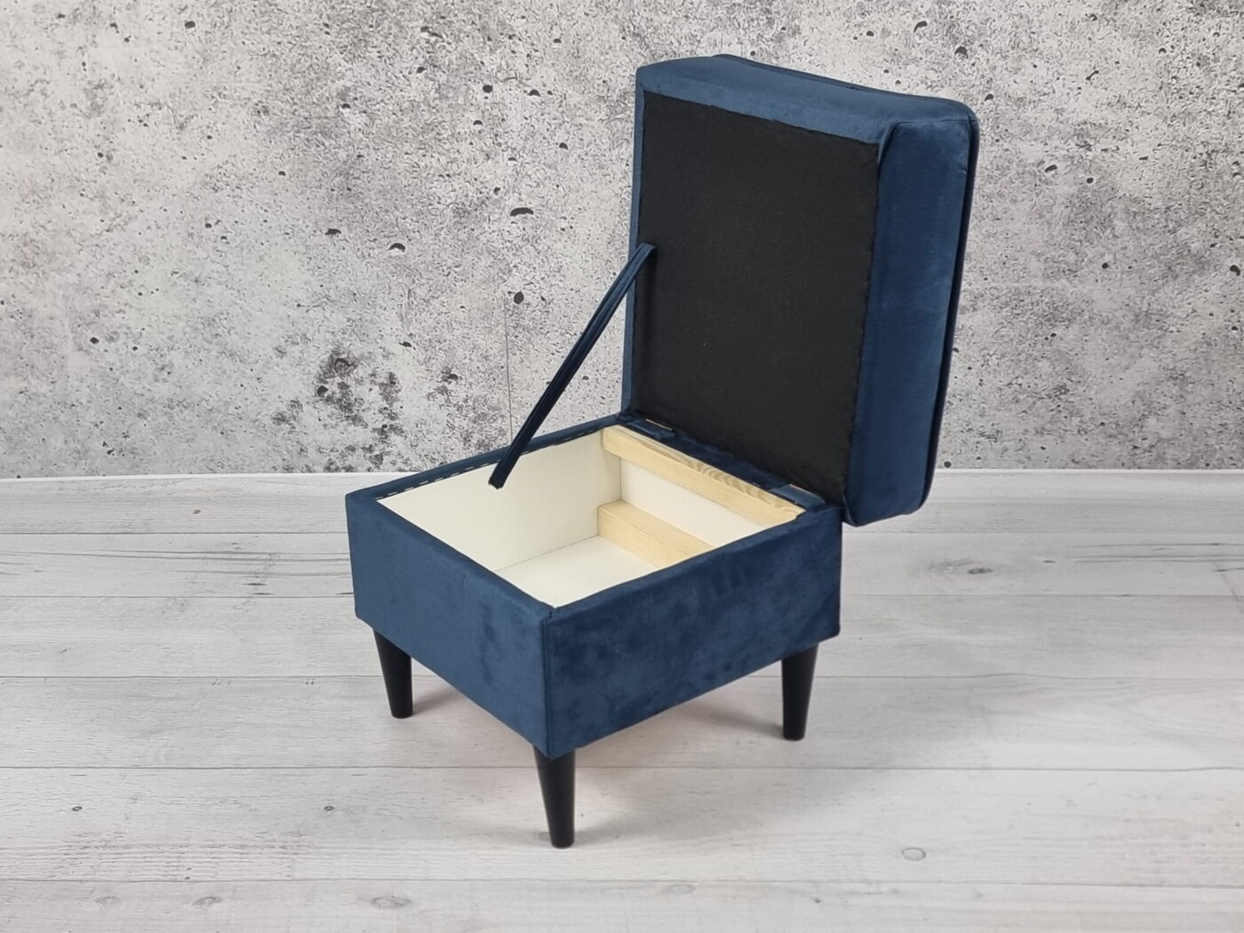 Podnóżek posiada pojemny schowek, idealny na koc, książki lub drobiazgi.
