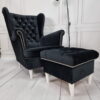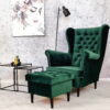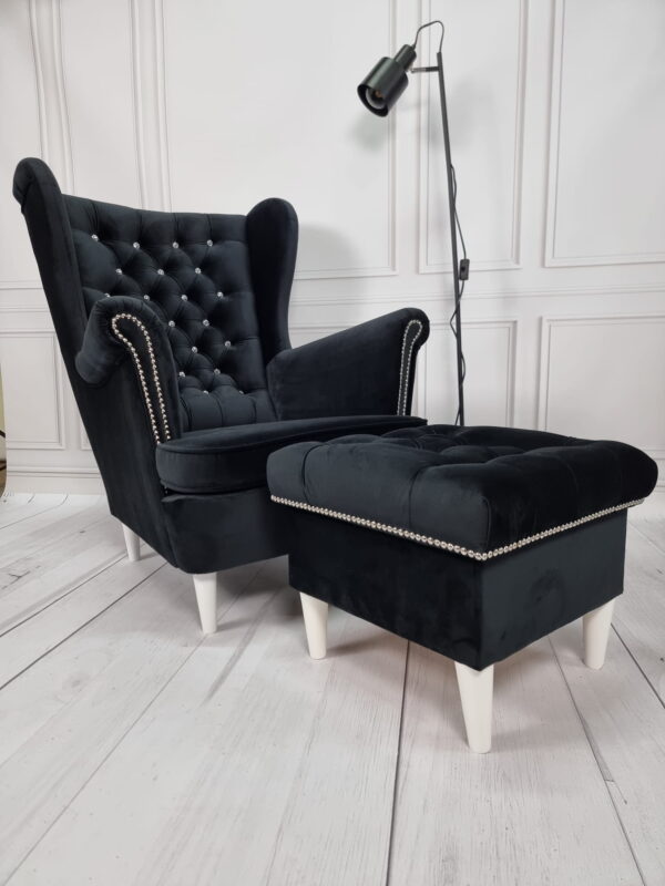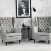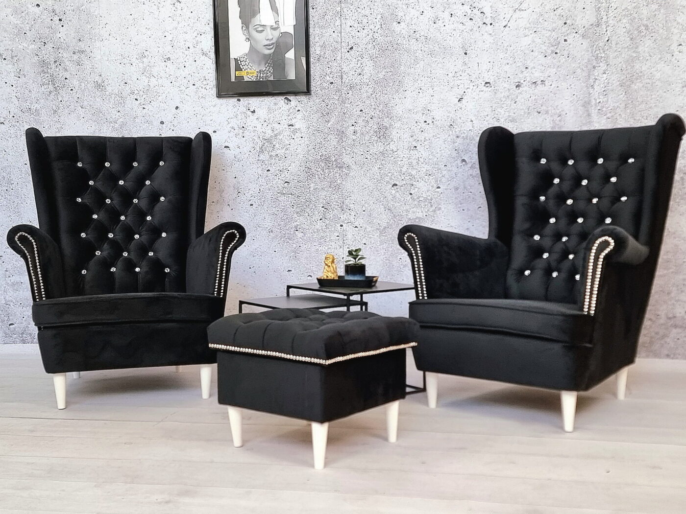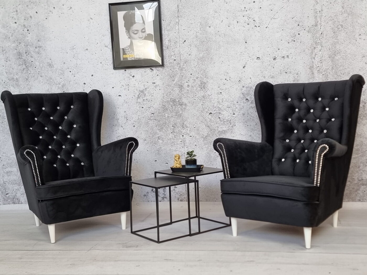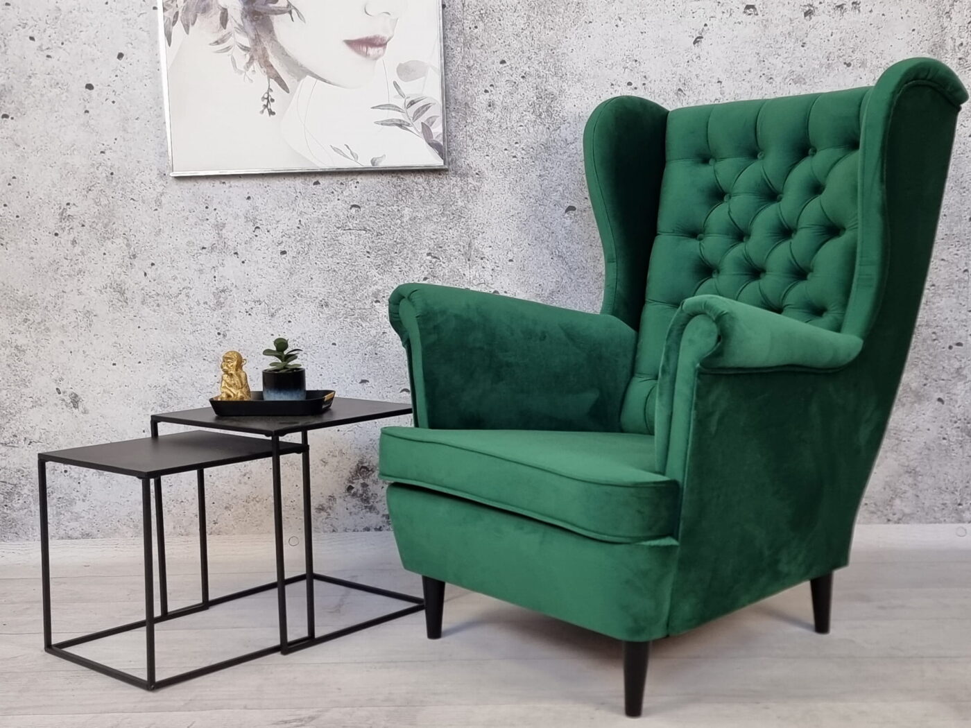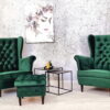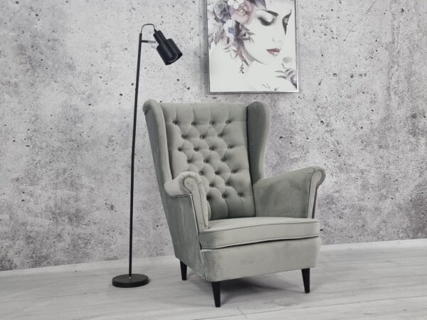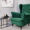 • Wysokie podłokietniki i charakterystyczne „uszy” tworzą idealne miejsce do relaksu z książką lub filiżanką herbaty.
