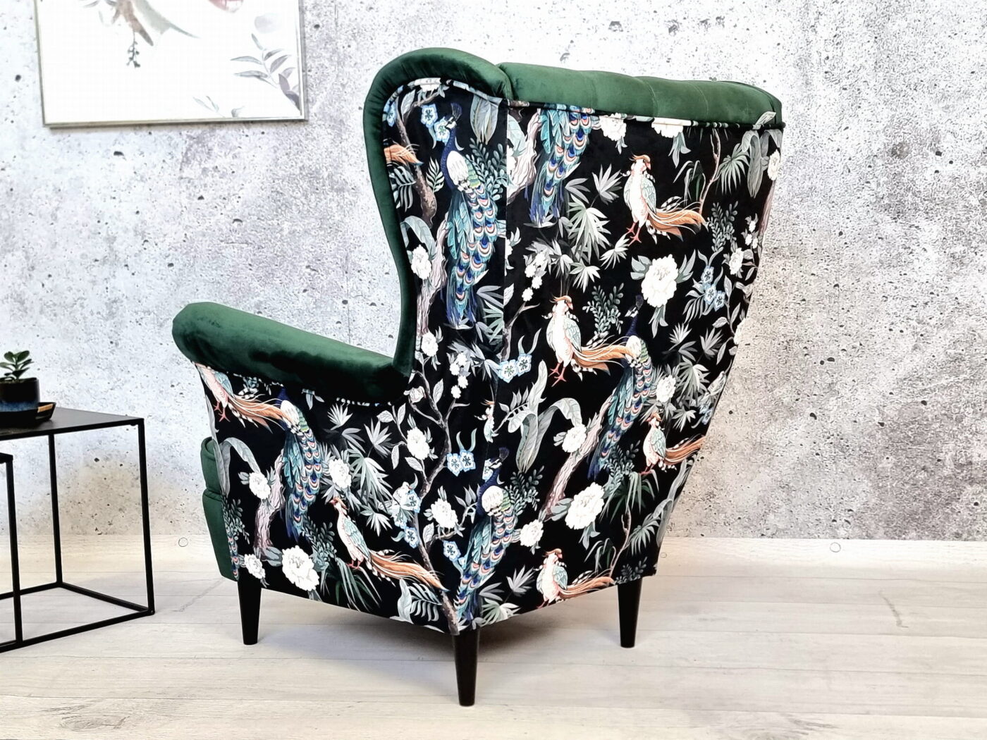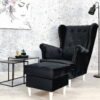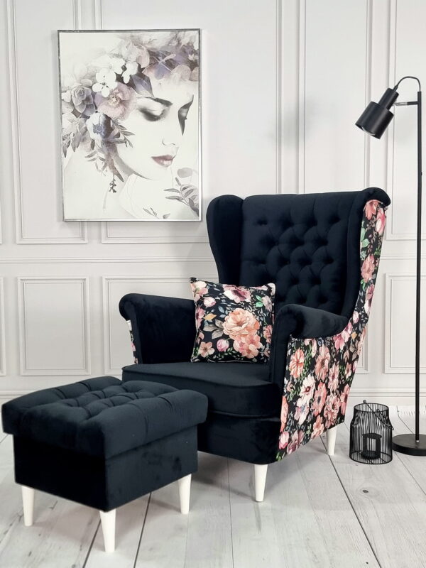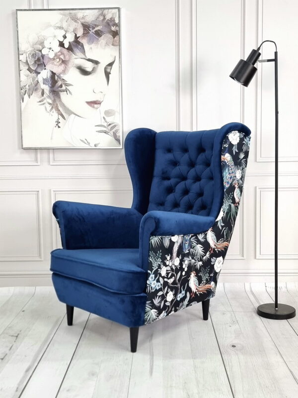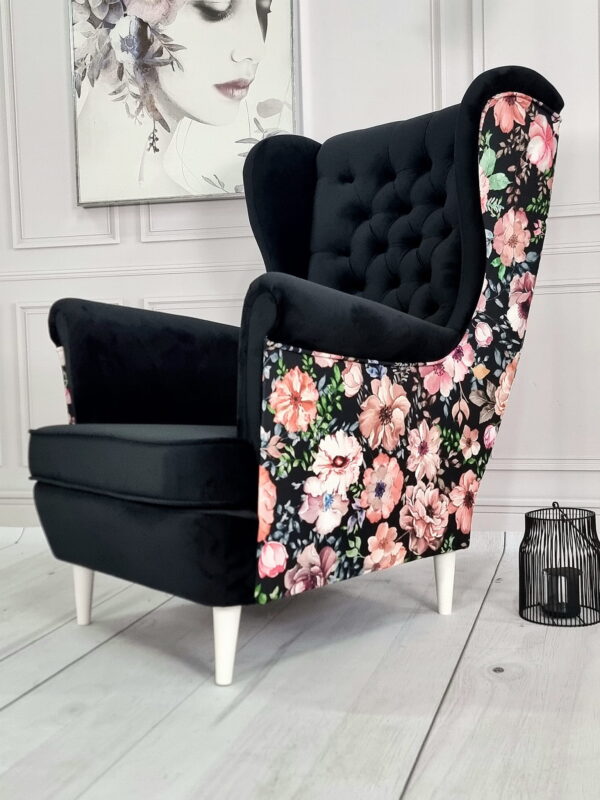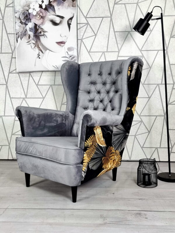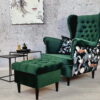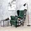 Wysokie podłokietniki i charakterystyczne „uszy” tworzą idealne miejsce do relaksu z książką lub filiżanką herbaty.