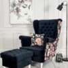 Możliwość zastosowania różnych rodzajów guzików – klasycznych w kolorze tkaniny lub ozdobnych kryształków – pozwala stworzyć unikalny wygląd fotela, dopasowany do indywidualnych preferencji i stylu wnętrza.