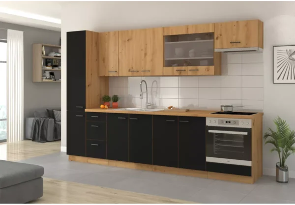 Zestaw mebli kuchennych Namet II to idealne połączenie nowoczesnej estetyki z funkcjonalnością, która sprawdzi się w codziennym użytkowaniu. Minimalistyczne, matowe fronty nadają kuchni elegancki i uporządkowany charakter, a przemyślany układ szafek pozwala maksymalnie wykorzystać dostępną przestrzeń.