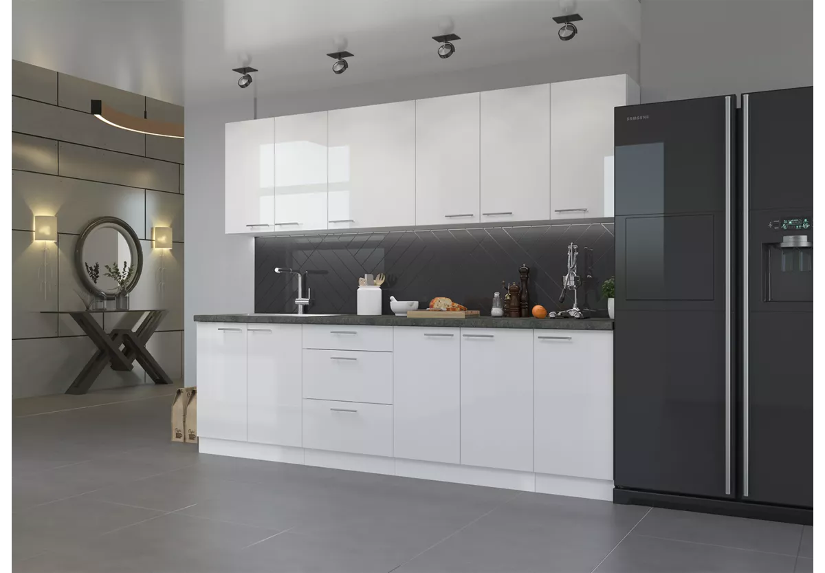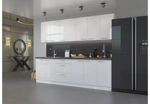 Zestaw mebli kuchennych Nicea to propozycja dla osób, które cenią ponadczasowy styl, solidne wykonanie i funkcjonalne rozwiązania. Przemyślany układ szafek oraz elegancka forma sprawiają, że kuchnia staje się estetyczną i komfortową przestrzenią do codziennego użytkowania.