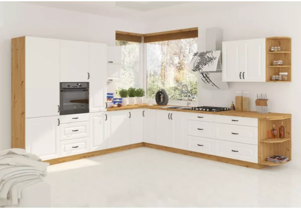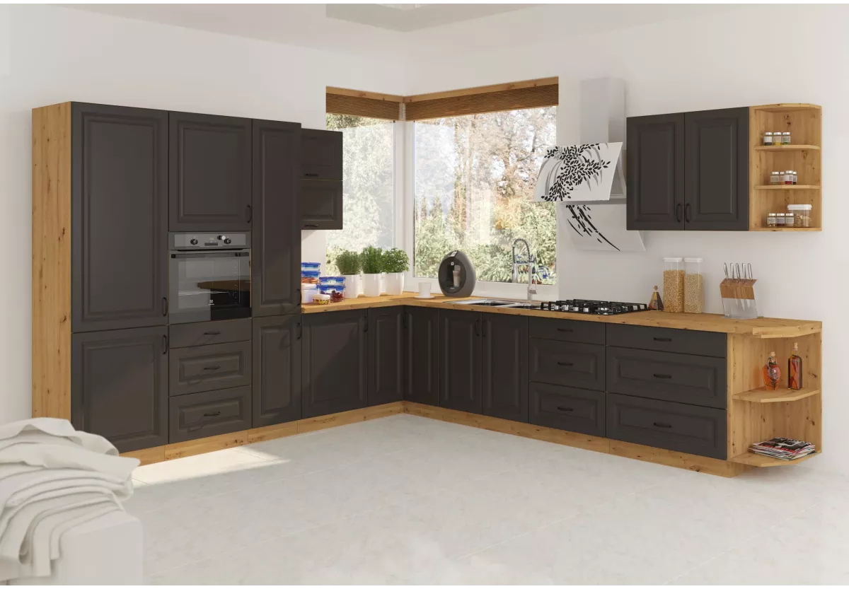 Tilos VI to rozbudowany zestaw mebli kuchennych, który łączy klasyczną elegancję z nowoczesnymi rozwiązaniami technologicznymi. Matowe fronty z subtelnym frezowaniem nadają wnętrzu wyjątkowego charakteru, a przemyślana konstrukcja gwarantuje wygodę użytkowania każdego dnia. To propozycja dla osób, które oczekują zarówno stylu, jak i maksymalnej funkcjonalności.