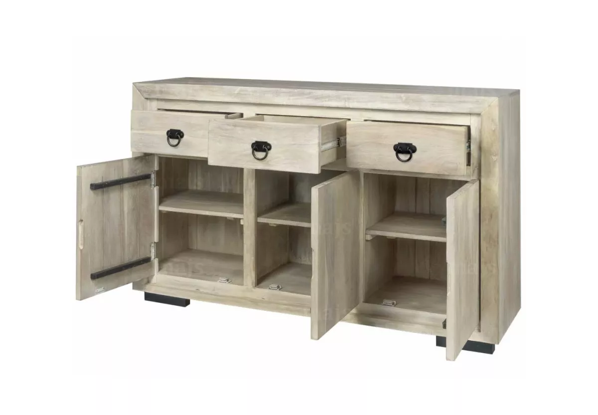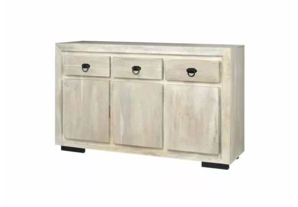 Komoda z litego drewna akacji indyjskiej to wyjątkowy mebel, który łączy autentyczność naturalnego materiału z nowoczesną formą. Bielone wykończenie podkreśla unikalne usłojenie drewna, nadając bryle lekkości i elegancji. To propozycja dla osób, które cenią wysoką jakość, trwałość oraz ponadczasowy styl.