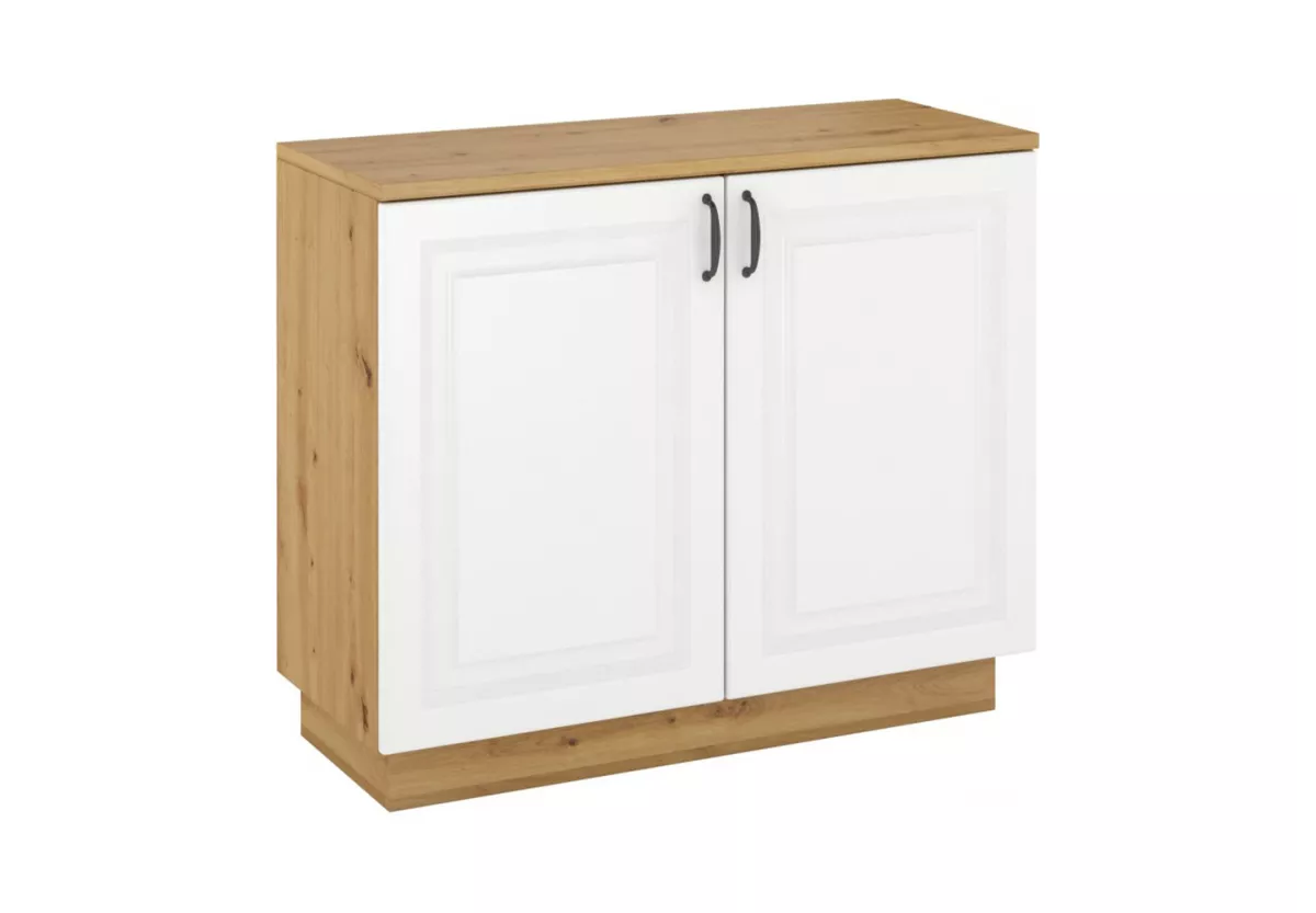 Komoda Alaia I w kolorze Biały + Dąb Artisan z czarnymi uchwytami