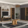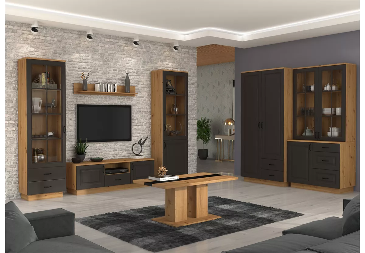 Komoda ALAIA II to stylowy i funkcjonalny mebel, który doskonale sprawdzi się w salonie, jadalni, sypialni lub przedpokoju. Połączenie grafitowych frontów z wybarwieniem dąb artisan nadaje jej elegancki, a jednocześnie ciepły charakter. To idealna propozycja dla osób, które cenią estetykę, praktyczność i spójną aranżację wnętrza.