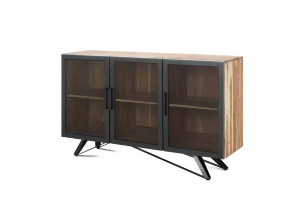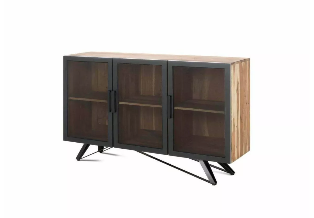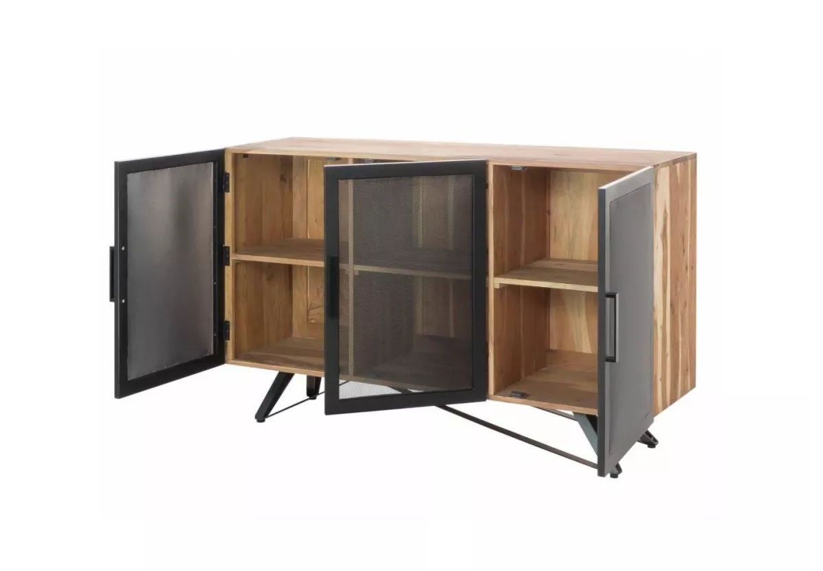 Komoda ASMITA to wyjątkowy mebel, który łączy naturalne piękno litego drewna akacji indyjskiej z surową estetyką stylu loftowego. Bogate, wyraziste usłojenie sprawia, że każdy egzemplarz ma unikalny charakter, a połączenie drewna z metalem nadaje komodzie nowoczesnego i industrialnego wyrazu.