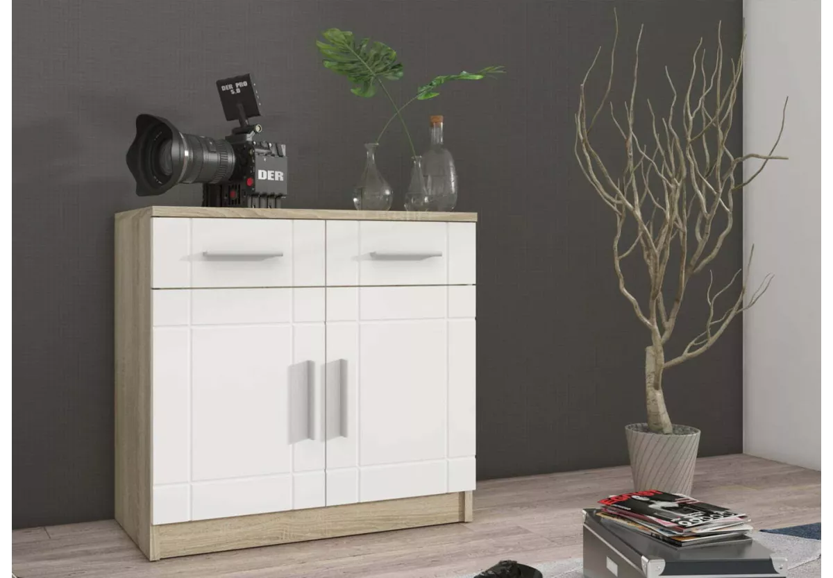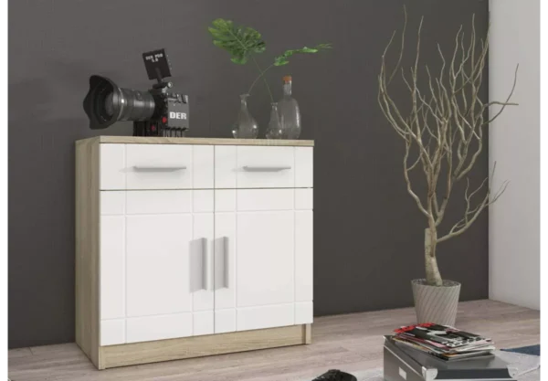 Komoda skandynawska Pari I w odcieniach bieli i sonomy