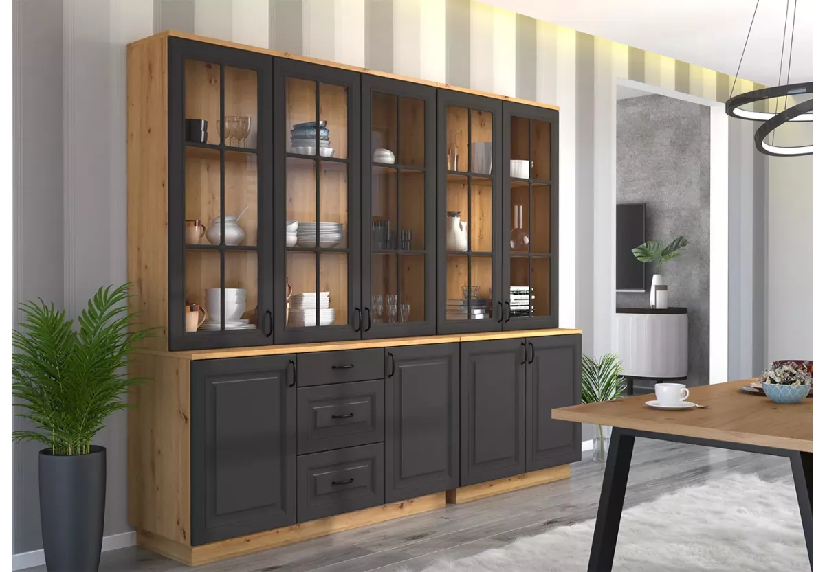 Kompaktowa komoda Alaia I w kolorze Grafit + Dąb Artisan z frezowanymi frontami