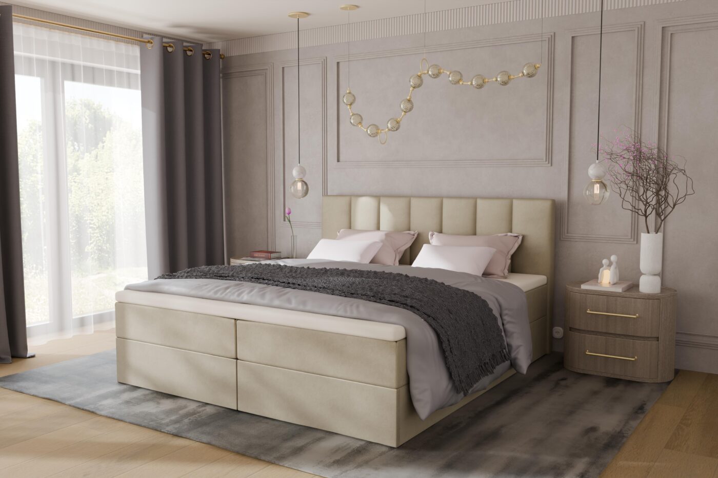Zadbaj o komfort snu i wygląd swojej sypialni dzięki eleganckiemu łóżku kontynentalnemu, które łączy wysoką estetykę, trwałość oraz ergonomię. Idealne zarówno do nowoczesnych, jak i klasycznych wnętrz.