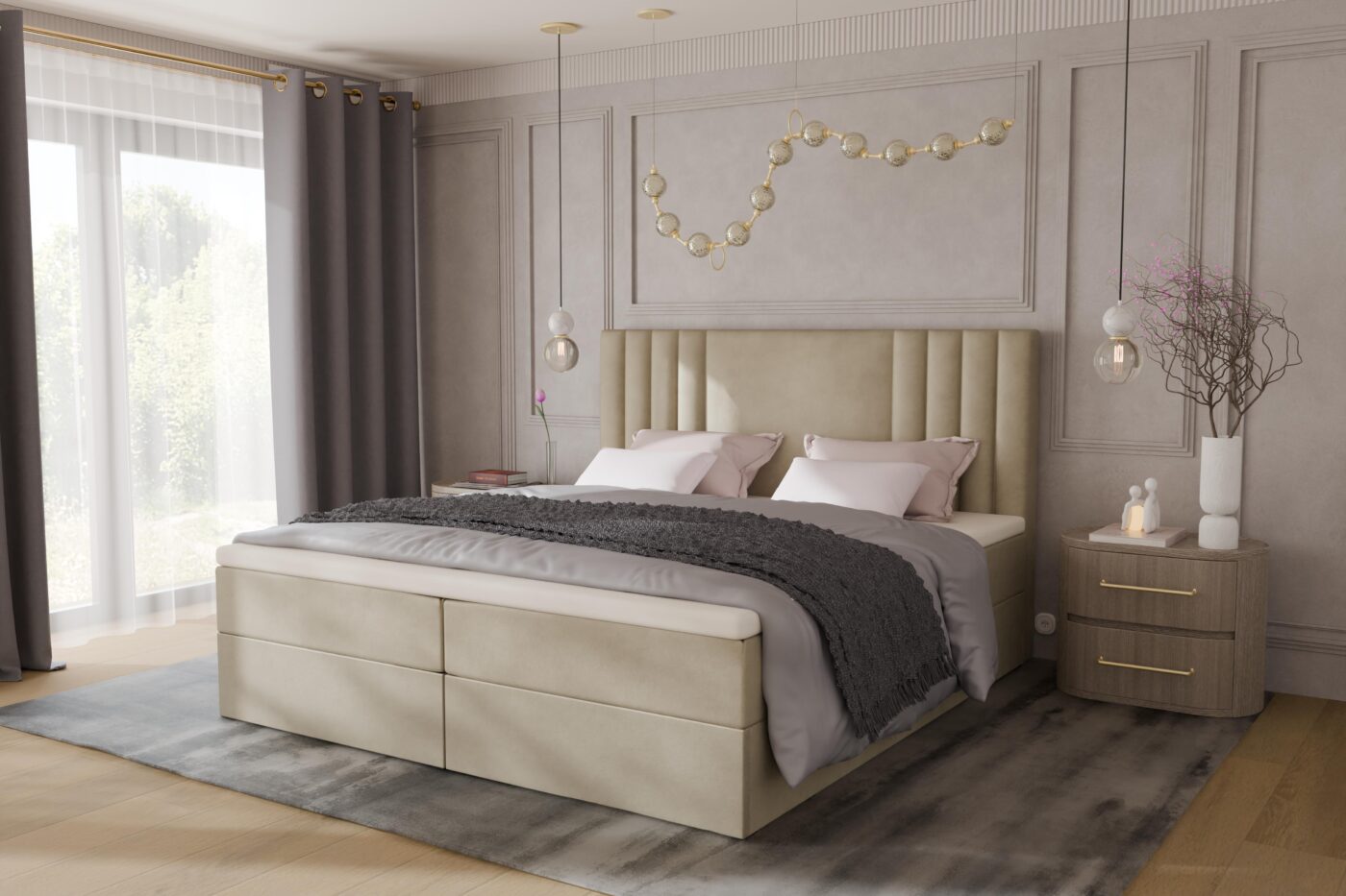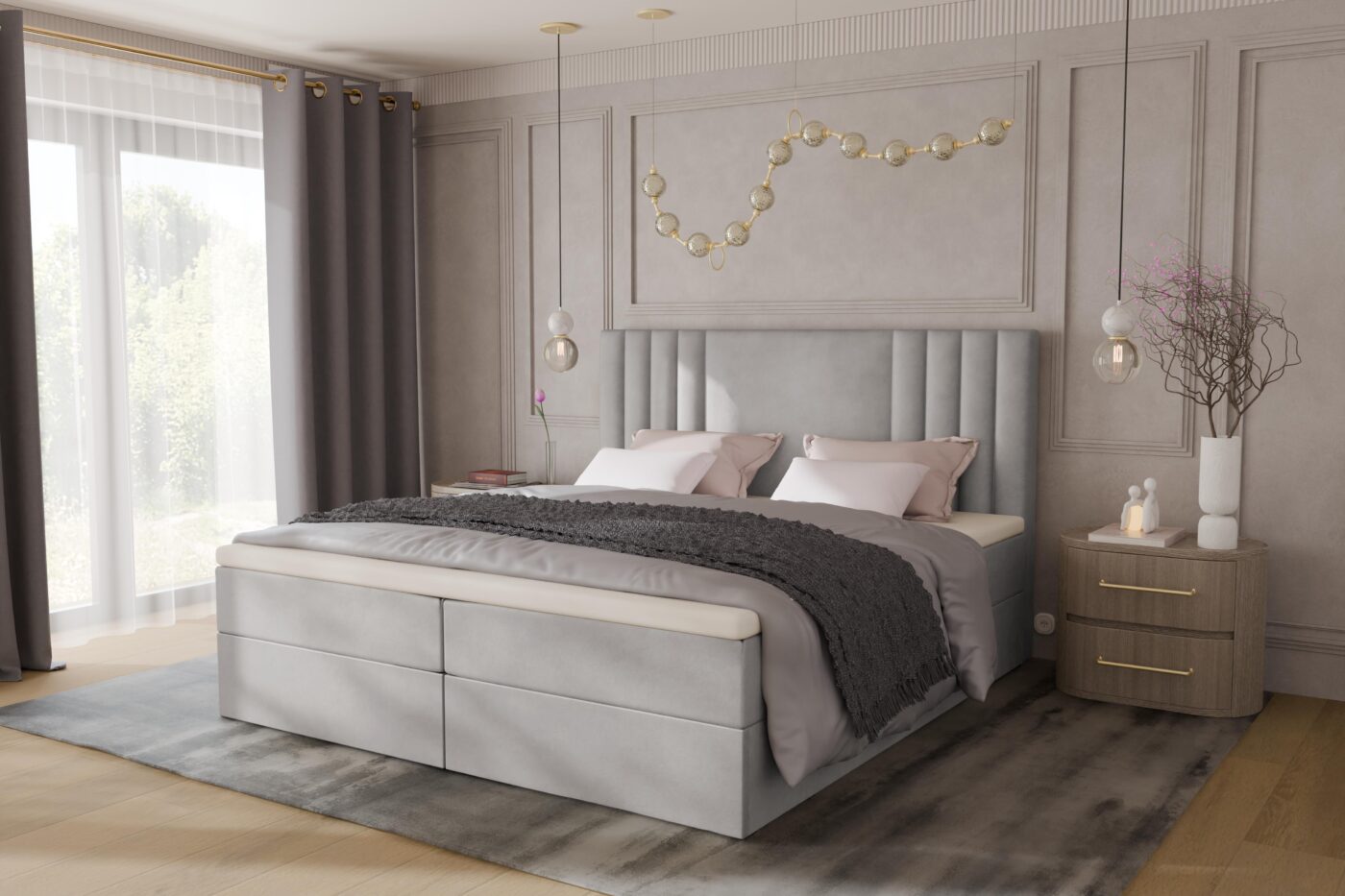 Zadbaj o komfort snu i wygląd swojej sypialni dzięki eleganckiemu łóżku kontynentalnemu, które łączy wysoką estetykę, trwałość oraz ergonomię. Idealne zarówno do nowoczesnych, jak i klasycznych wnętrz.