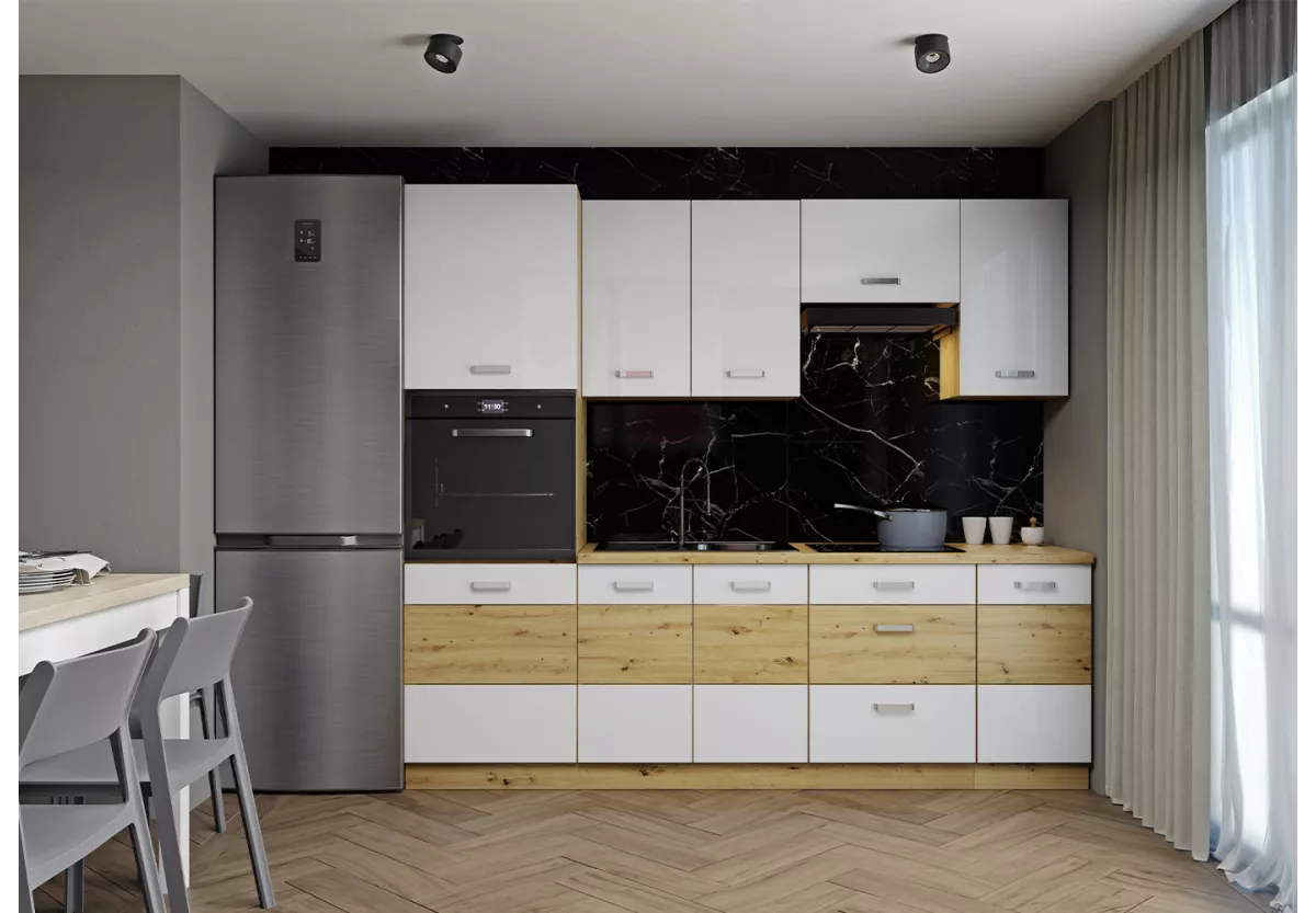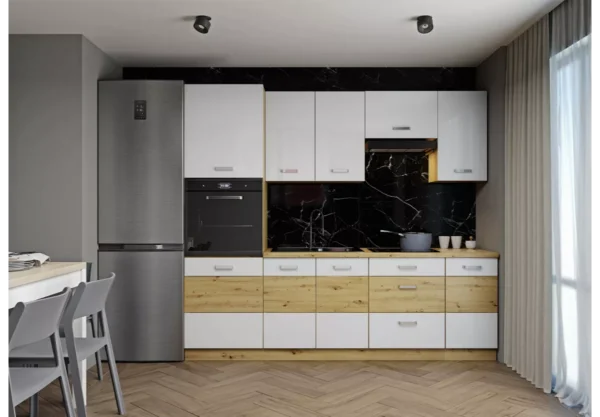Meble kuchenne Arton II to harmonijne połączenie estetyki, solidności i praktycznych rozwiązań. Każdy element zestawu został zaprojektowany z myślą o wygodzie użytkowania oraz trwałości, dzięki czemu kuchnia staje się miejscem komfortowym, uporządkowanym i stylowym.