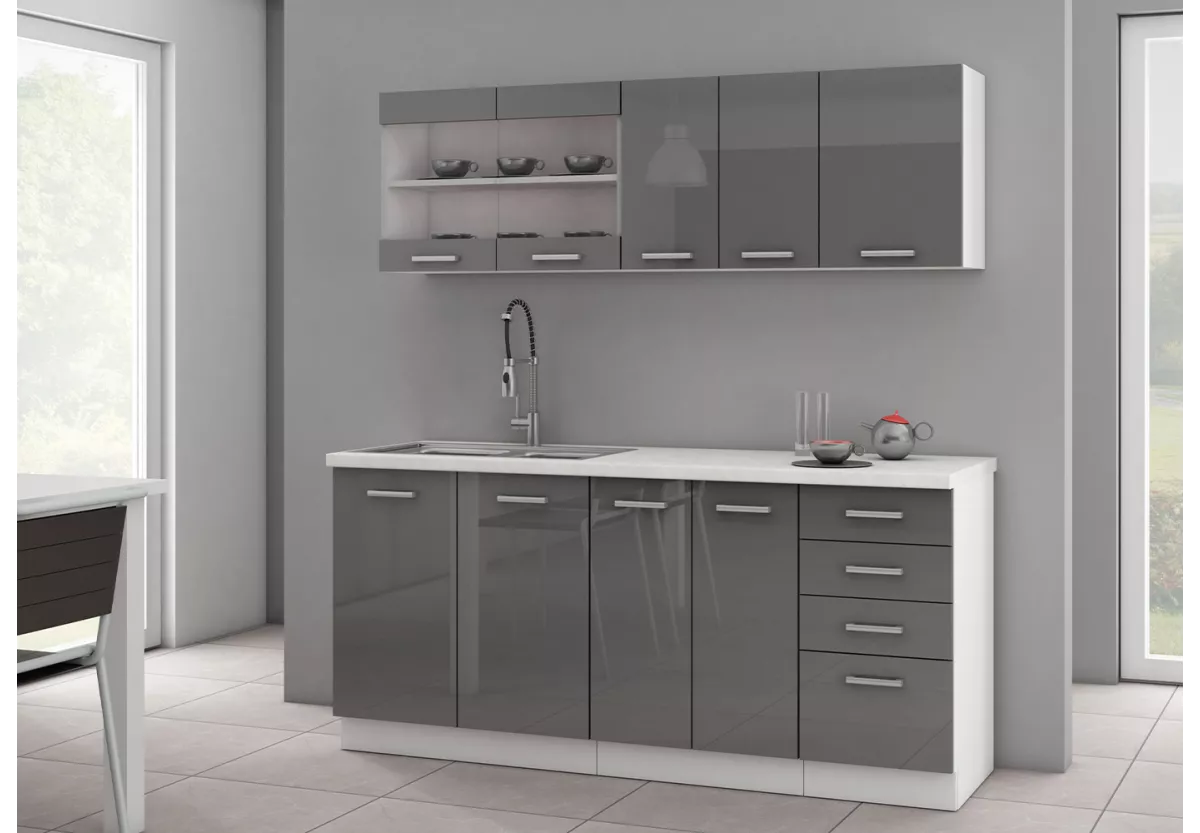 • Fronty w kolorze szarego połysku – elegancja i nowoczesny charakter
