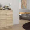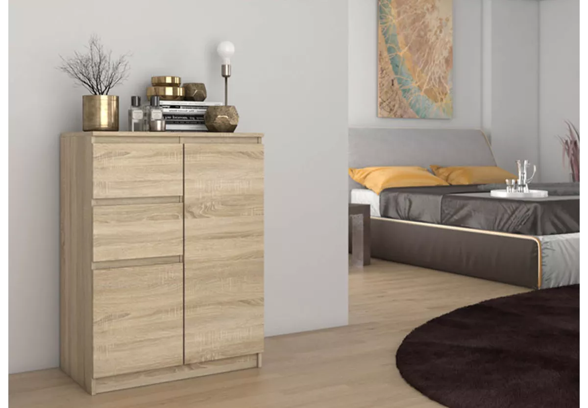 Komoda DALIO 2D2S w kolorze dąb sonoma to idealne połączenie nowoczesnej estetyki i praktycznych rozwiązań. Prosta bryła, bezuchwytowe fronty oraz naturalne wybarwienie sprawiają, że mebel doskonale wpisuje się w różnorodne aranżacje – od nowoczesnych, przez skandynawskie, aż po bardziej klasyczne wnętrza.