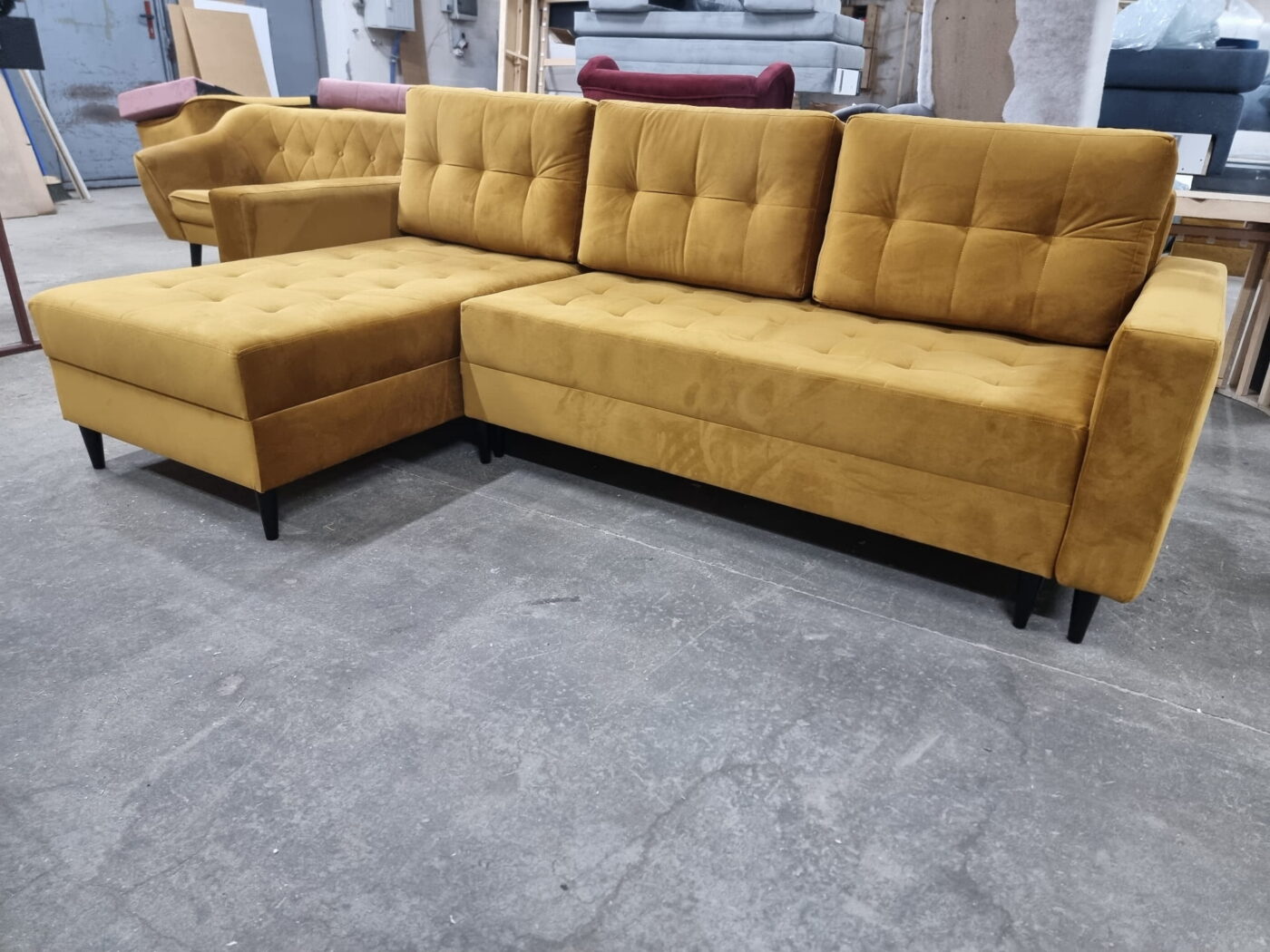 ✔️ Drewniane nogi o wysokości 13 cm nadają narożnikowi lekkości i elegancji, a jednocześnie gwarantują stabilność konstrukcji.