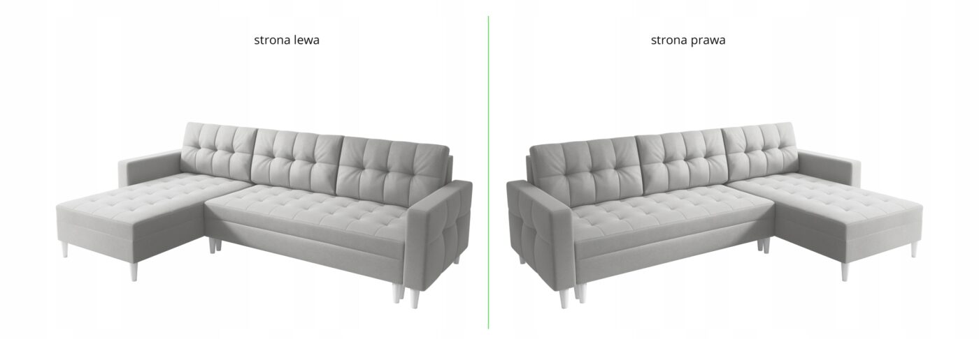 Narożnik PORTO dostępny jest w dwóch wariantach układu: prawym oraz lewym, dzięki czemu z łatwością dopasujesz go do swojego wnętrza.