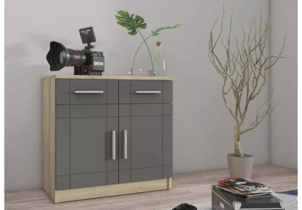 Nowoczesna komoda Pari I w kolorach grafit + sonoma odporna na uszkodzenia