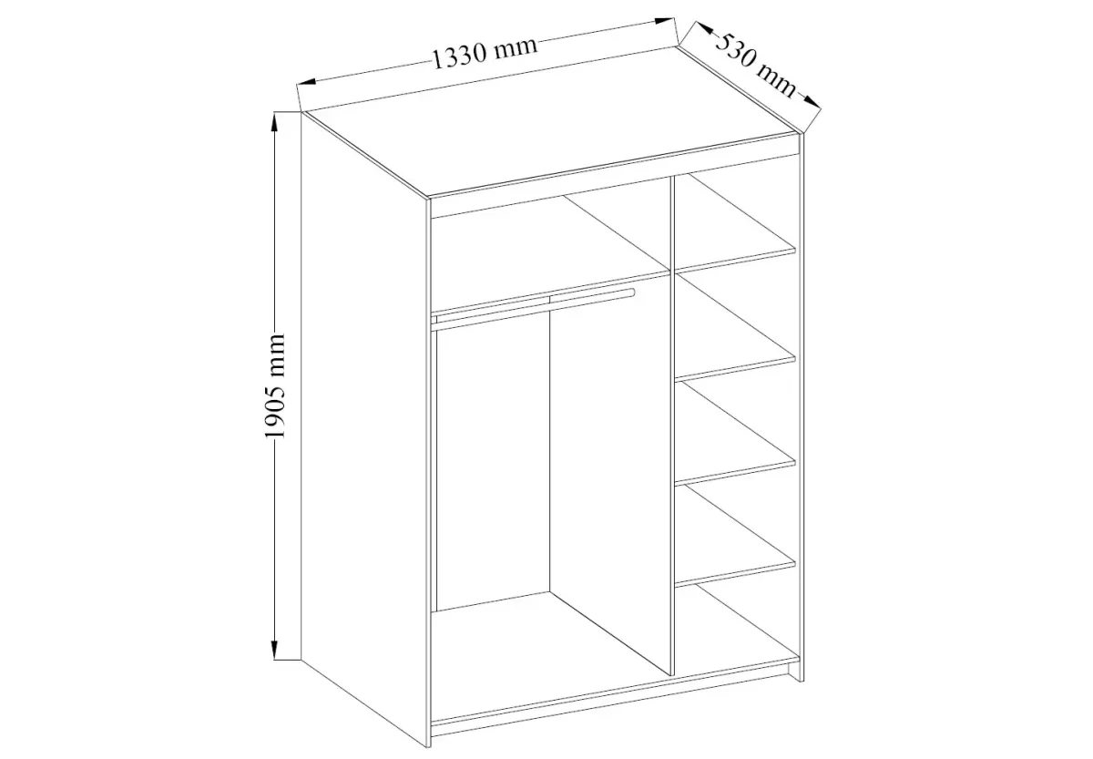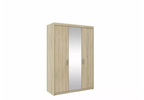 Szafa ELE 3 z lustrem to doskonałe połączenie klasycznej estetyki, funkcjonalnego wnętrza oraz solidnego wykonania. Dzięki kompaktowej szerokości 133 cm mebel oferuje dużą pojemność, jednocześnie nie przytłaczając wnętrza – idealnie sprawdzi się w sypialni, przedpokoju lub pokoju młodzieżowym.