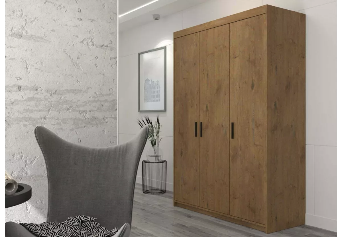 Szafa ELE 3 to uniwersalny mebel zaprojektowany z myślą o codziennej wygodzie i estetyce. Trzydrzwiowa konstrukcja o szerokości 133 cm oferuje dużą pojemność przy zachowaniu kompaktowej bryły, dzięki czemu doskonale sprawdzi się w sypialni, salonie, pokoju młodzieżowym czy domowym biurze.