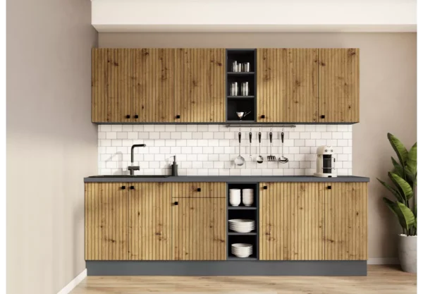 Zestaw mebli kuchennych Nea to propozycja dla osób, które poszukują połączenia nowoczesnego designu, komfortu użytkowania oraz solidnego wykonania. Starannie dopracowane detale i wysokiej klasy materiały sprawiają, że kuchnia staje się nie tylko funkcjonalna, ale również elegancka i przyjemna w codziennym użytkowaniu.