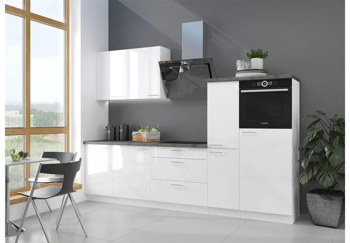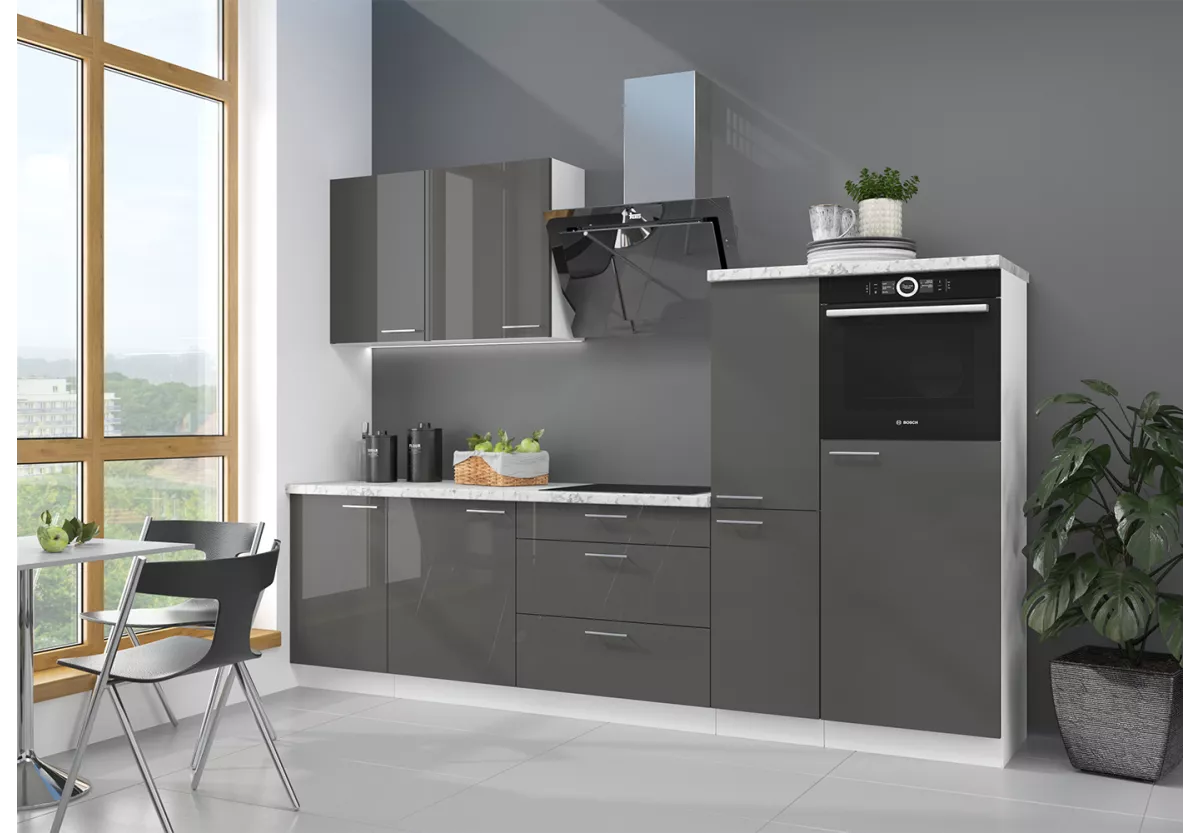 Zestaw mebli kuchennych Nicea II to propozycja dla osób, które oczekują połączenia nowoczesnej estetyki, funkcjonalnych rozwiązań oraz solidnego wykonania. Przemyślany układ szafek oraz eleganckie fronty sprawiają, że kuchnia staje się wygodną i stylową przestrzenią do codziennego użytkowania.