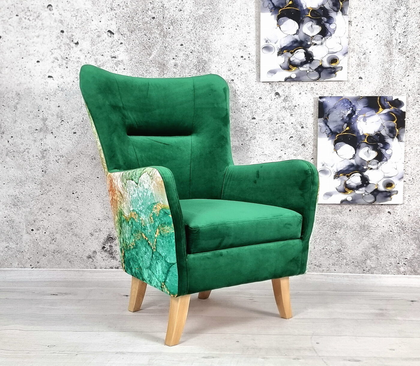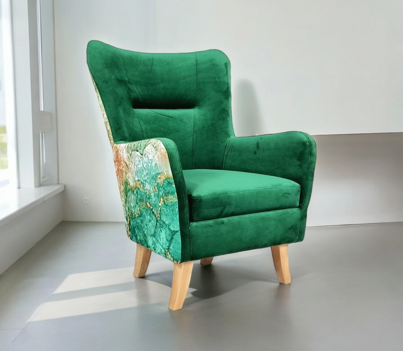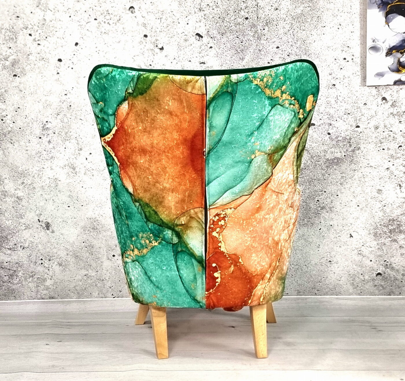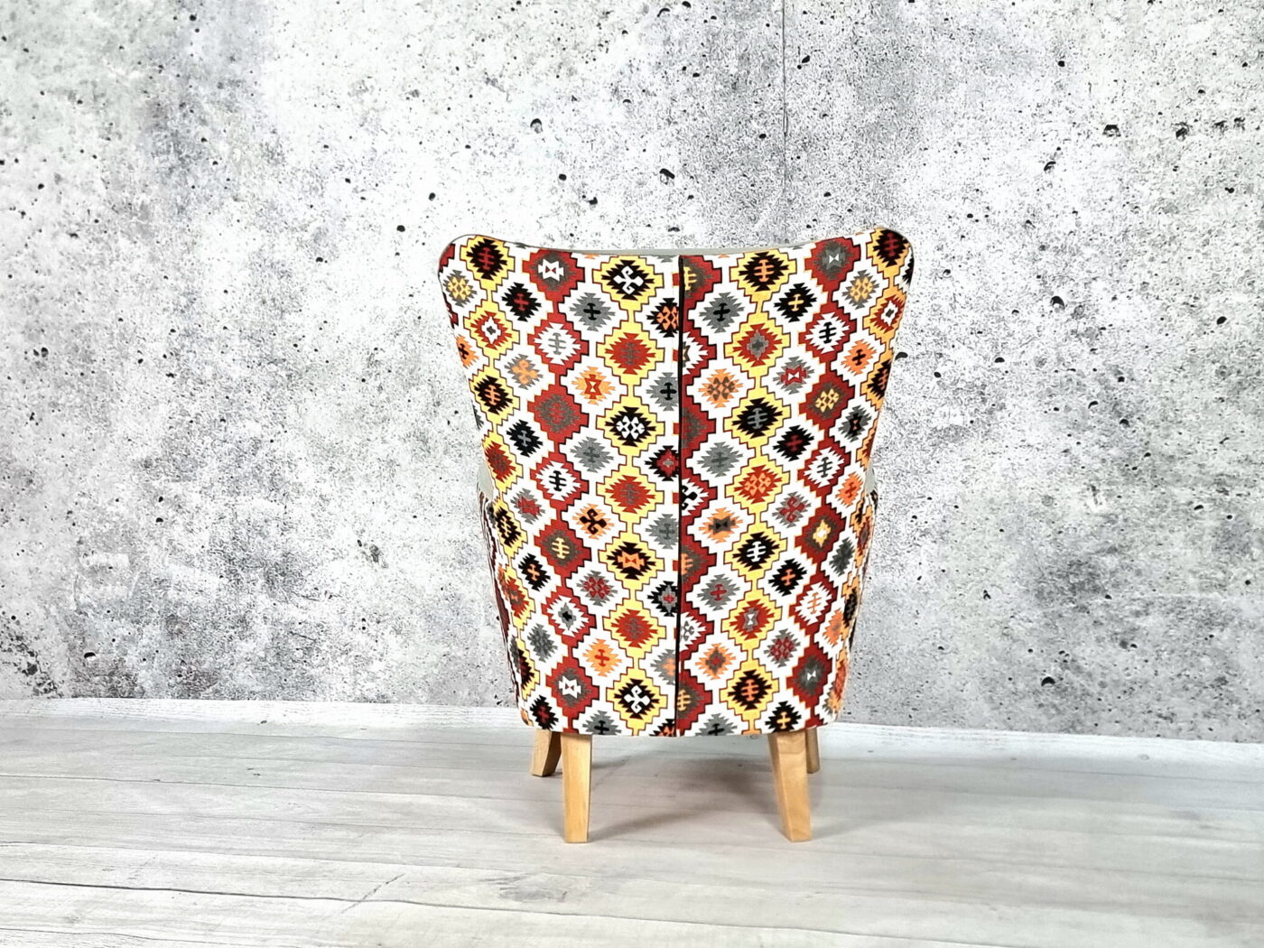 🔸 Nogi: wykonane z litego drewna, o wysokości 19 cm, które nadają fotelowi lekkości i eleganckiego wyglądu.