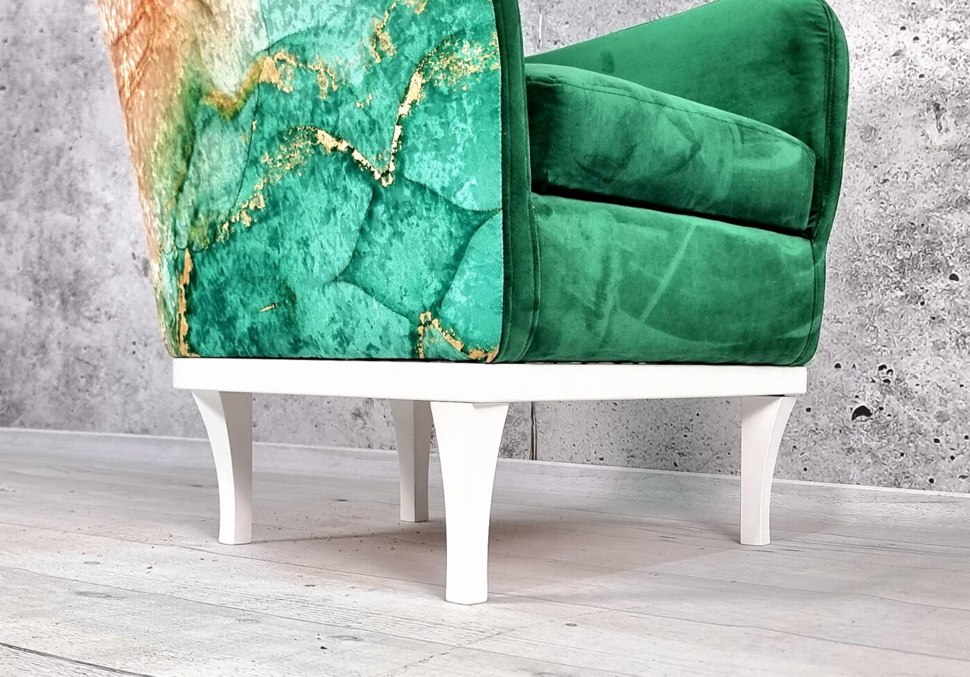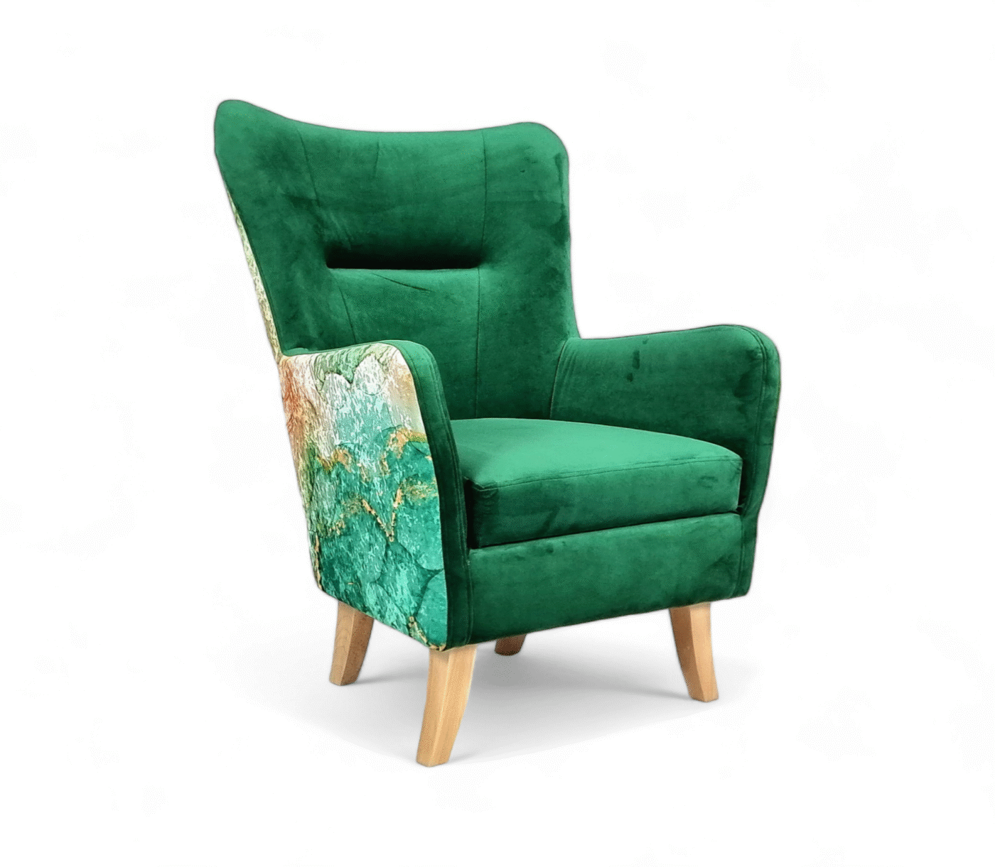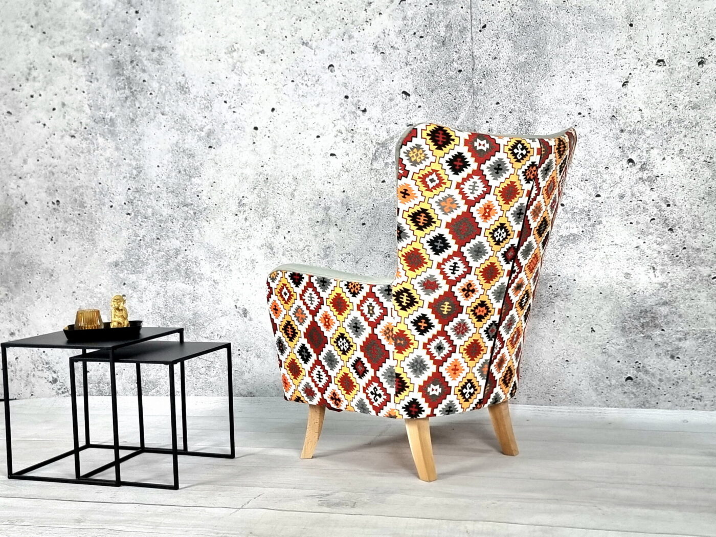 🔸 Nogi: wykonane z litego drewna, o wysokości 19 cm, które nadają fotelowi lekkości i eleganckiego wyglądu.