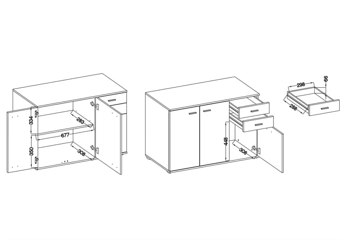 Proste uchwyty oraz nóżki wykonane z tworzywa sztucznego nadają komodzie lekkości i subtelnej elegancji. Klasyczna forma sprawia, że mebel pasuje zarówno do wnętrz tradycyjnych, jak i nowoczesnych.