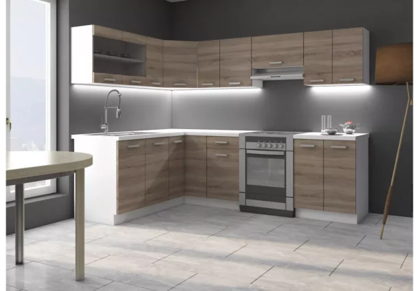Zestaw mebli kuchennych Vella II to harmonijne połączenie nowoczesnego designu, funkcjonalności oraz solidnego wykonania. Każdy element zestawu został zaprojektowany z myślą o wygodzie codziennego użytkowania oraz estetyce, która nadaje kuchni spójny i elegancki charakter.