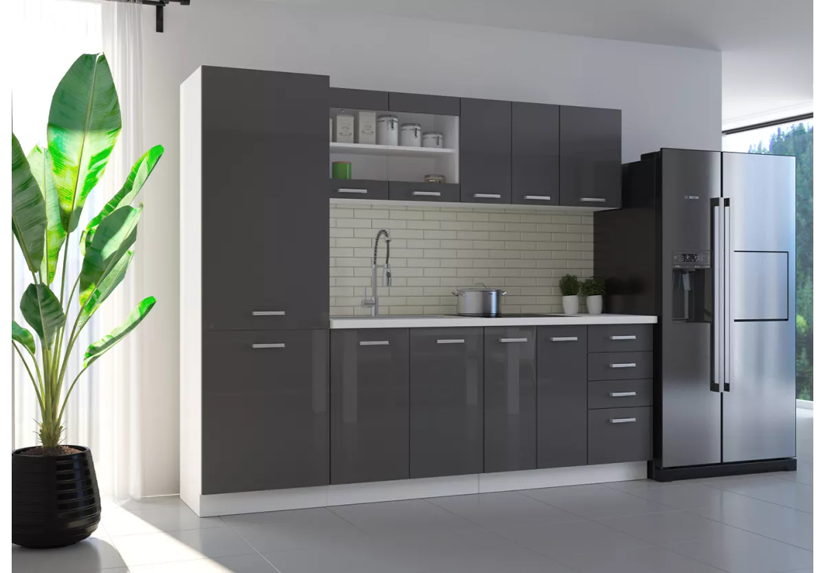 • Fronty w kolorze szarego połysku – elegancki i nowoczesny wygląd