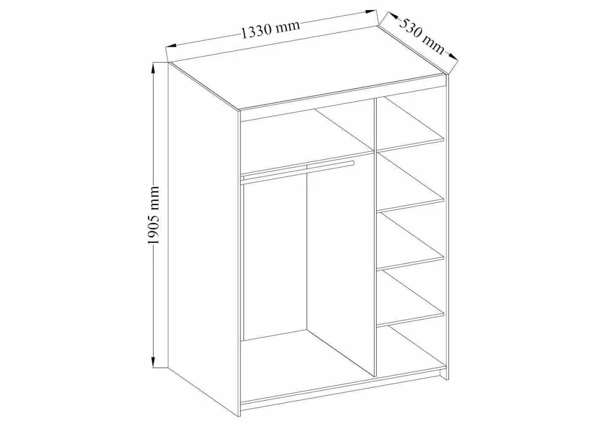 Szafa ELE 3 z lustrem to doskonałe połączenie klasycznej estetyki, funkcjonalnego wnętrza oraz solidnego wykonania. Dzięki kompaktowej szerokości 133 cm mebel oferuje dużą pojemność, jednocześnie nie przytłaczając wnętrza – idealnie sprawdzi się w sypialni, przedpokoju lub pokoju młodzieżowym.