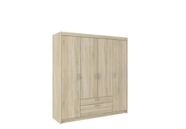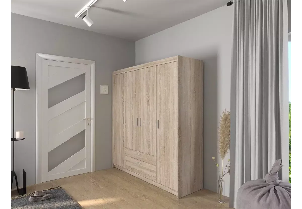 Szafa ELE 4 to harmonijne połączenie klasycznej estetyki, dużej pojemności i solidnego wykonania. Czterodrzwiowa konstrukcja zapewnia wyjątkowo dużo miejsca do przechowywania, dzięki czemu mebel doskonale sprawdzi się w sypialni, salonie lub przedpokoju.