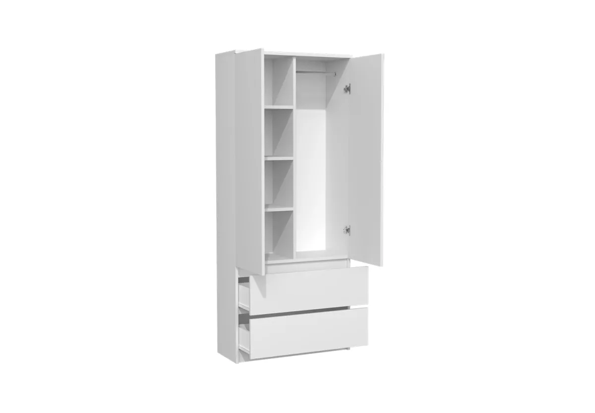 Szafa SUZI 90 cm to doskonałe rozwiązanie dla osób, które cenią ład, porządek oraz nowoczesny design. Jej elegancka, uniwersalna forma sprawia, że świetnie odnajduje się w różnych aranżacjach wnętrz – od minimalistycznych i skandynawskich, po nowoczesne przestrzenie mieszkalne.
