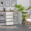 Komoda została wykonana z laminowanej płyty meblowej, odpornej na codzienne użytkowanie: