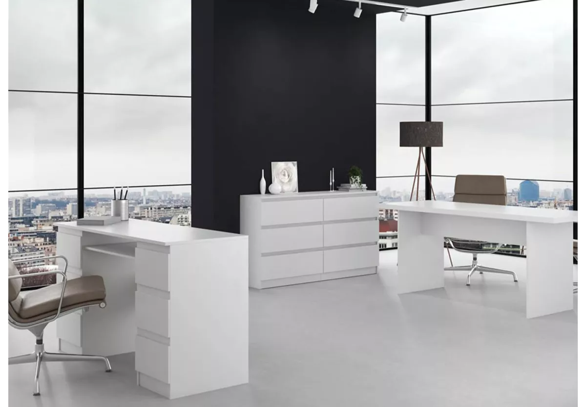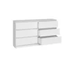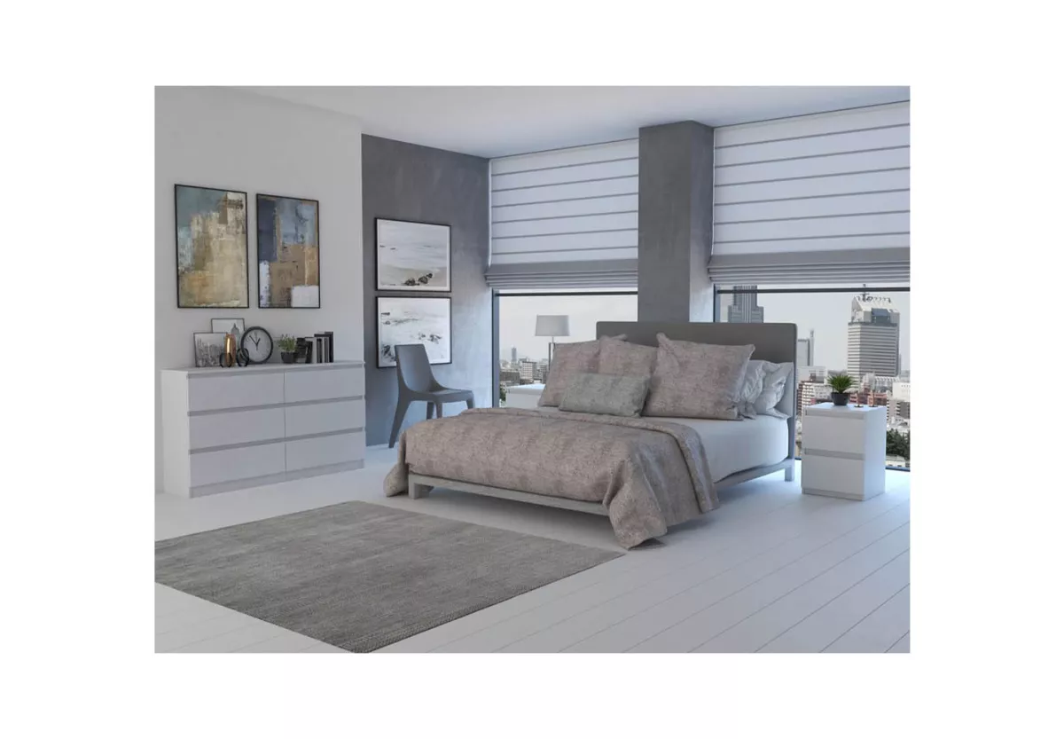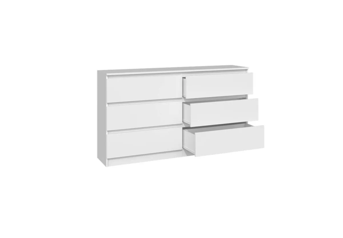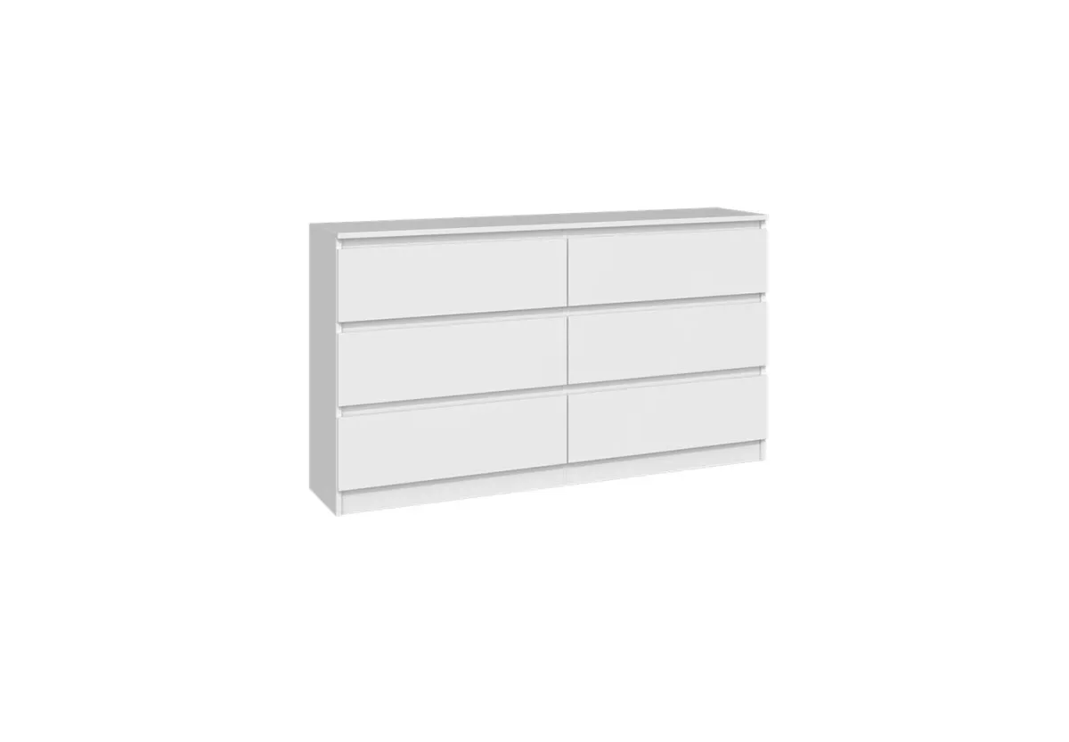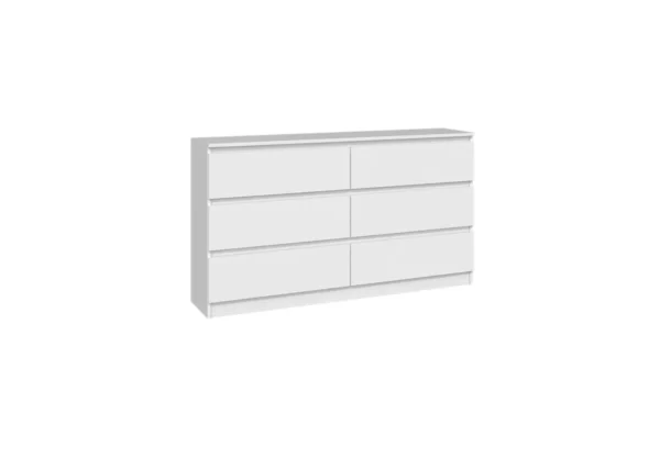 Komoda MALWINA 140 to nowoczesny i niezwykle pakowny mebel, który doskonale odnajdzie się w sypialni, salonie oraz pokoju dziecka. Jej szeroka konstrukcja i sześć pojemnych szuflad pozwalają na wygodne przechowywanie ubrań, dokumentów oraz codziennych akcesoriów, pomagając utrzymać idealny porządek w każdej przestrzeni.