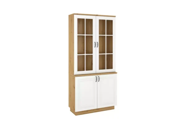 Witryna Alaia w kolorze Białym + Dąb Artisan z przeszklonymi drzwiami