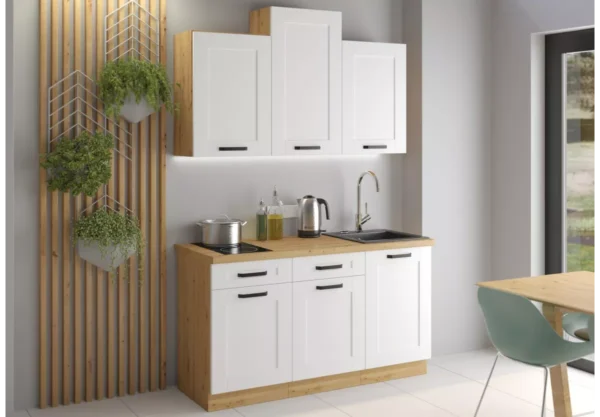 Zestaw mebli kuchennych Holly III to idealne rozwiązanie do mniejszych kuchni, w których liczy się każdy centymetr przestrzeni. Przemyślany układ szafek, eleganckie fronty oraz nowoczesne rozwiązania techniczne sprawiają, że kuchnia staje się funkcjonalna, stylowa i komfortowa w codziennym użytkowaniu.