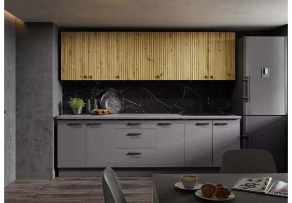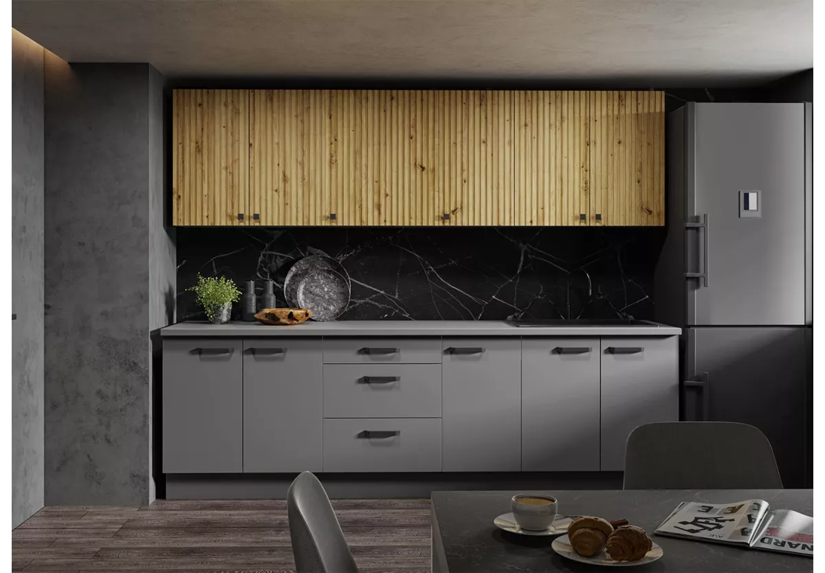 Zestaw mebli kuchennych Nea + Sensiv to idealne połączenie nowoczesnego designu, funkcjonalnych rozwiązań i solidnego wykonania. Przemyślany układ szafek oraz eleganckie wykończenie sprawiają, że kuchnia staje się komfortowym i stylowym centrum domu.